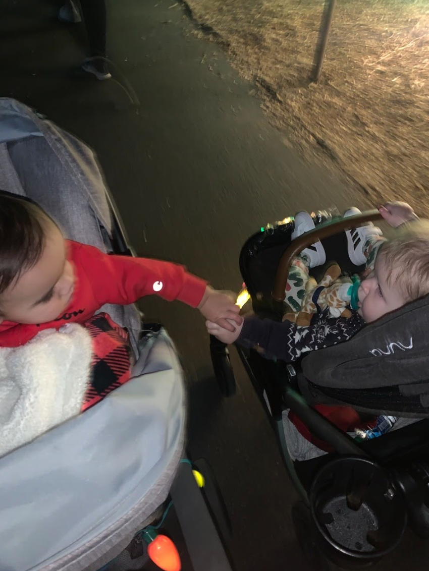 On Sunday, strolling the zoo lights with grandchildren, pushing my almost year old ‘Chill Cherub*’, next to the mother of my 10-month-old ‘Joy Boy*’ also in a stroller, their eyes of wonder sparkle as they take in the lights. Eyes so wide, as if able to absorb the sights and sounds and smells through their senses. And then, more magic, a spontaneous desire for human connection. One grandson reaches out his hand to touch the other. Their hands touch and clasp. It happens again and again. These innately connected beings just know and act in a way that sees wonderment is about connecting. So, they touch hands and clasp fingers and look at each other. Again, and again.