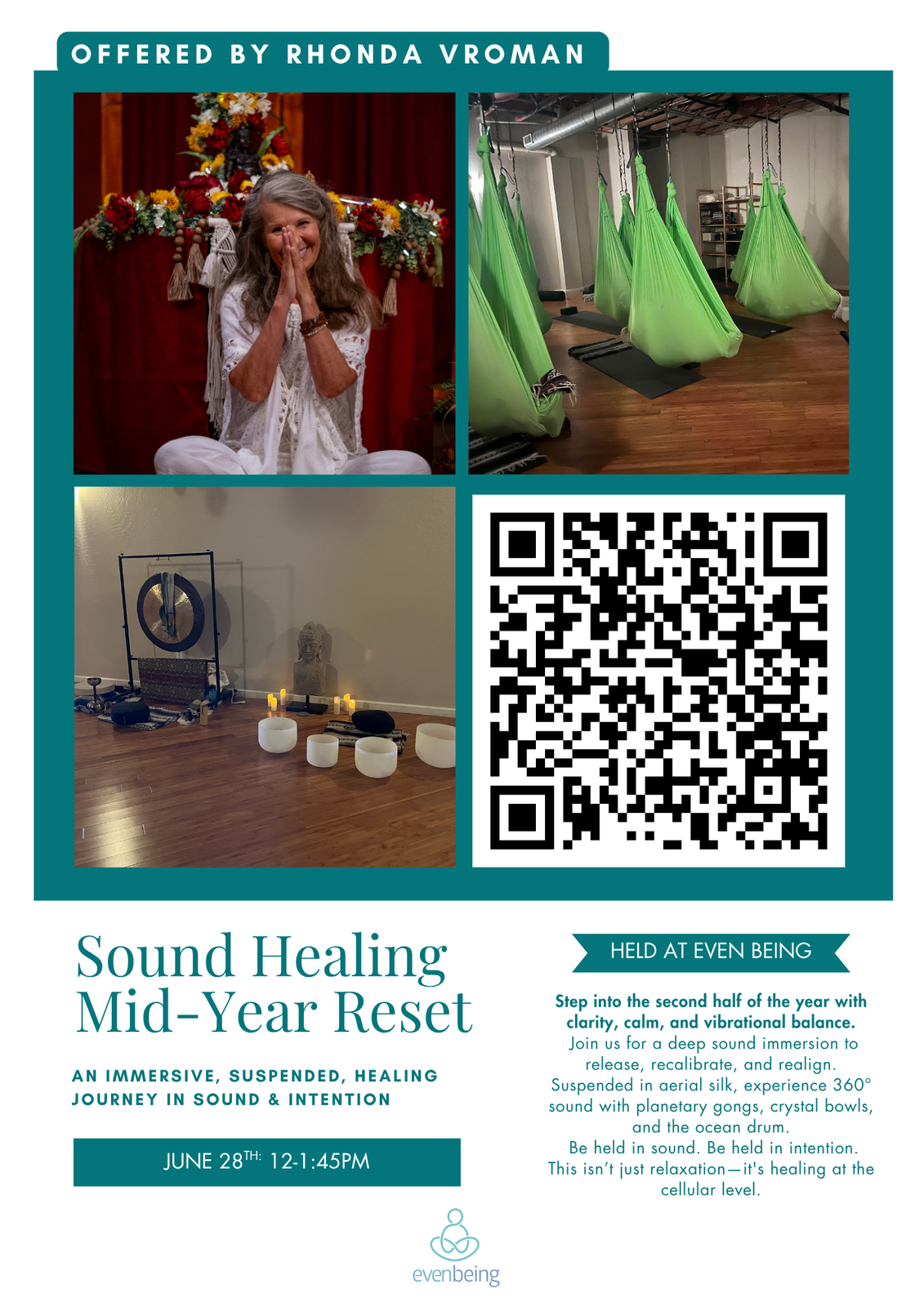 While we may not be able to take extended days away and apart, we can invite intentional spaciousness with deep breaths, practices, and quiet. For an immersive replenishment experience, layered with somatic suspension, healing vibration sound and contemplative guidance, join me on Saturday, June 28th at Noon.